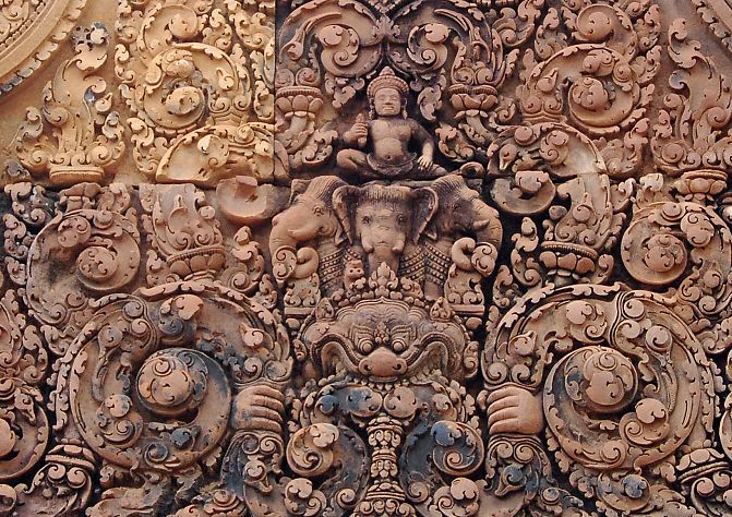 ![]() ▲「東洋のモナリザ」といわれているデバター アンドレマルローが二十二歳の時上記写真と類似の像(現在は立ち入り禁止地区のため、見る事が出来ない)鶴嘴と金引き鋸で切り出し、フランスに持ち帰ろうとした.しかしプノンペンで官憲につかまり、有罪の判決を受けた。 |