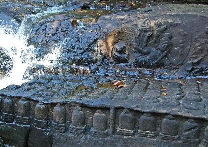 | 聖山のクーレン山から流れる川にはリンガとヨニ、シヴァ神、ヴィシュヌ神が多く彫られている。 王が風土病に掛かった時、聖山から流れる水がリンガとヨニ群で活性化され水が王の病を治療したと言われている。 |