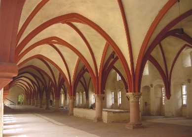 | 1116年と1131年にベネディクト教団が入植し、その後1136年にはシトー派修道僧が移ってきた。彼らは厳しい戒律に従い「祈りかつ働け」を信条とした。 現在でも美しい環境に囲まれて質素な修道院が佇んでいる。ライン川から少し丘を登ったところにある。ドイツ人の観光客が多くいたが、こちらでも「清貧の思想」が見直されているのだろう。 |