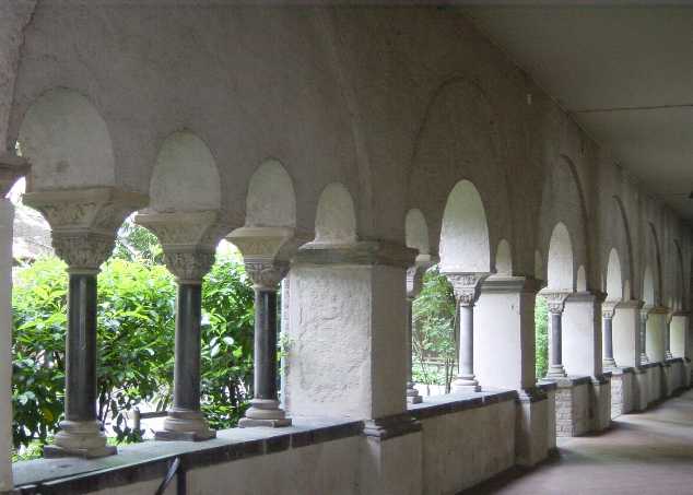 ▲Dザンクト・アポステルン聖堂(1192年再建) この聖堂の起源は9世紀の礼拝堂である。その後1020年に聖堂が建てられた。その後火災に遭い、1192年に再建され、1219年頃内陣が完成した。年代的にはやや新しいが内容的にはドイツロマネスク様式の特色を示している。上記Bザンクト・マリア・イム・カピトール聖堂(1065年)を手本とし、翼廊が主祭室と同様に丸く張り出している。いわゆる三弁型聖堂だ。半円形のアーケードが2層に外壁を取り巻いている。 |