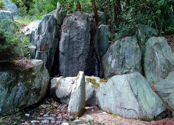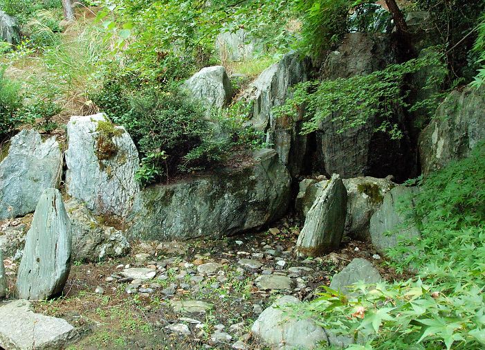 ![]() ▲頂上への園路脇にある石組み (左側:高さ120cm・幅100cm、中央:高さ100cm・幅180cm、右:高さ100cm・幅55cm) |