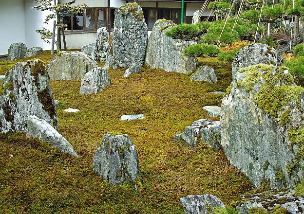 ![]() ▲庭園の敷地は回廊に沿って斜面になっているが、その部分に栗石を所々に置き、視点が上下する |