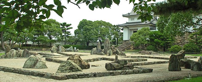 ▲八陣の庭は岸和田城と対峙しても見劣りしない ![]() ▲南(風陣)より八陣の庭と天守閣 |