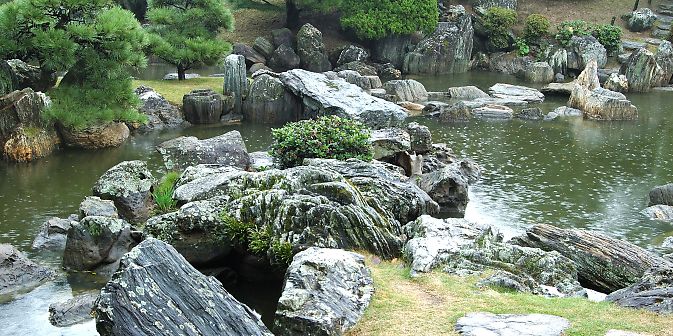 ![]() 枯流れ 枯山水部分の最も深部にある上田宗箇の傑作:自然を超えた第二の自然=超自然 |