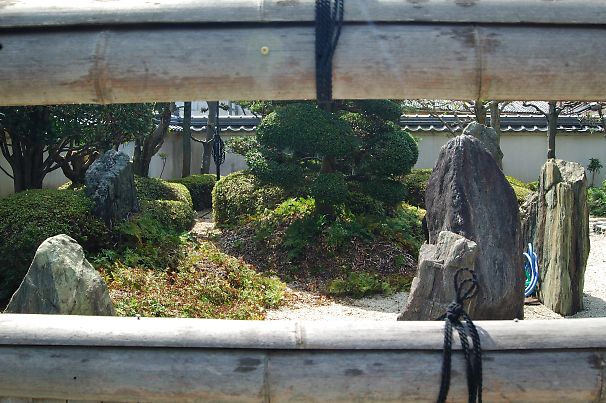 | 重森が1961年(昭36年)に作った庭である。65歳、衰えを知らない創作意欲があふれている。個人の住宅に所狭しと巨石が並んでいる、しかも青石である。豪華極まりない贅沢な庭である。当時の山口家の家業が隆盛を誇っていたに違いない。なお、当地には親戚筋である村上家と二つの庭があるが京都以外ではこのような名園を観賞する機会が少ないが、今後も大事に保存し有効に活用されたい。 |